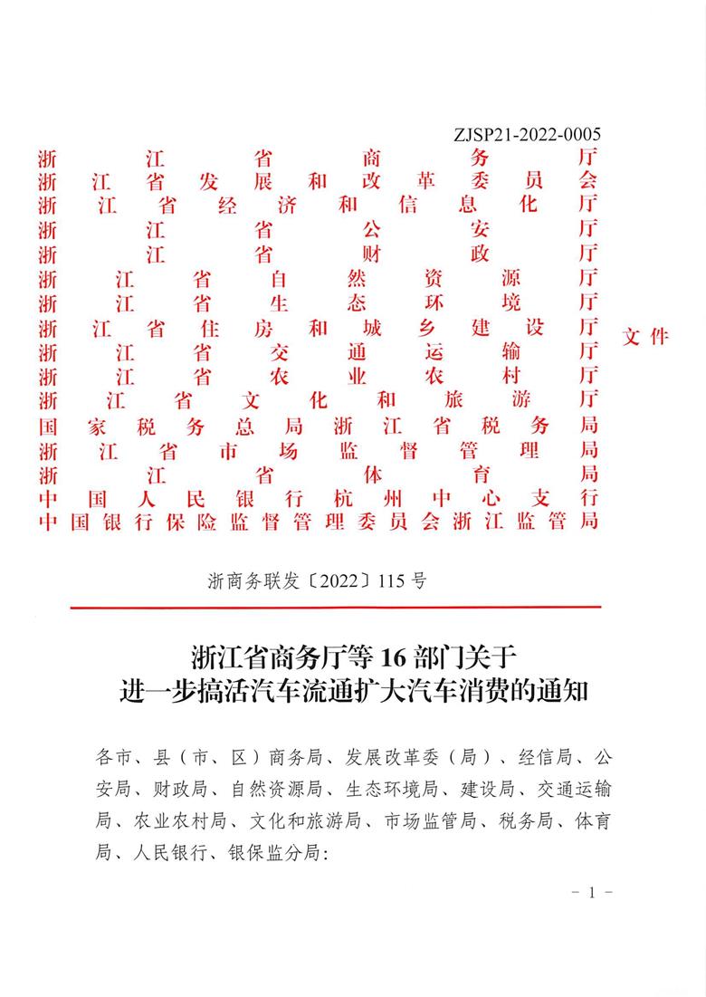 浙江省商务厅等16部门关于进一步搞活汽车流通扩大汽车消费的通知